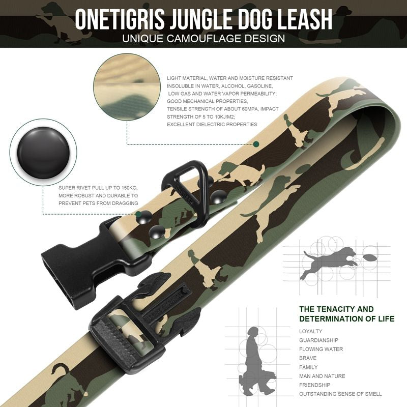 Un largo de 1.8 metros en esta correa forrada en PVC Táctico para los climas más extremos y de fácil limpieza.